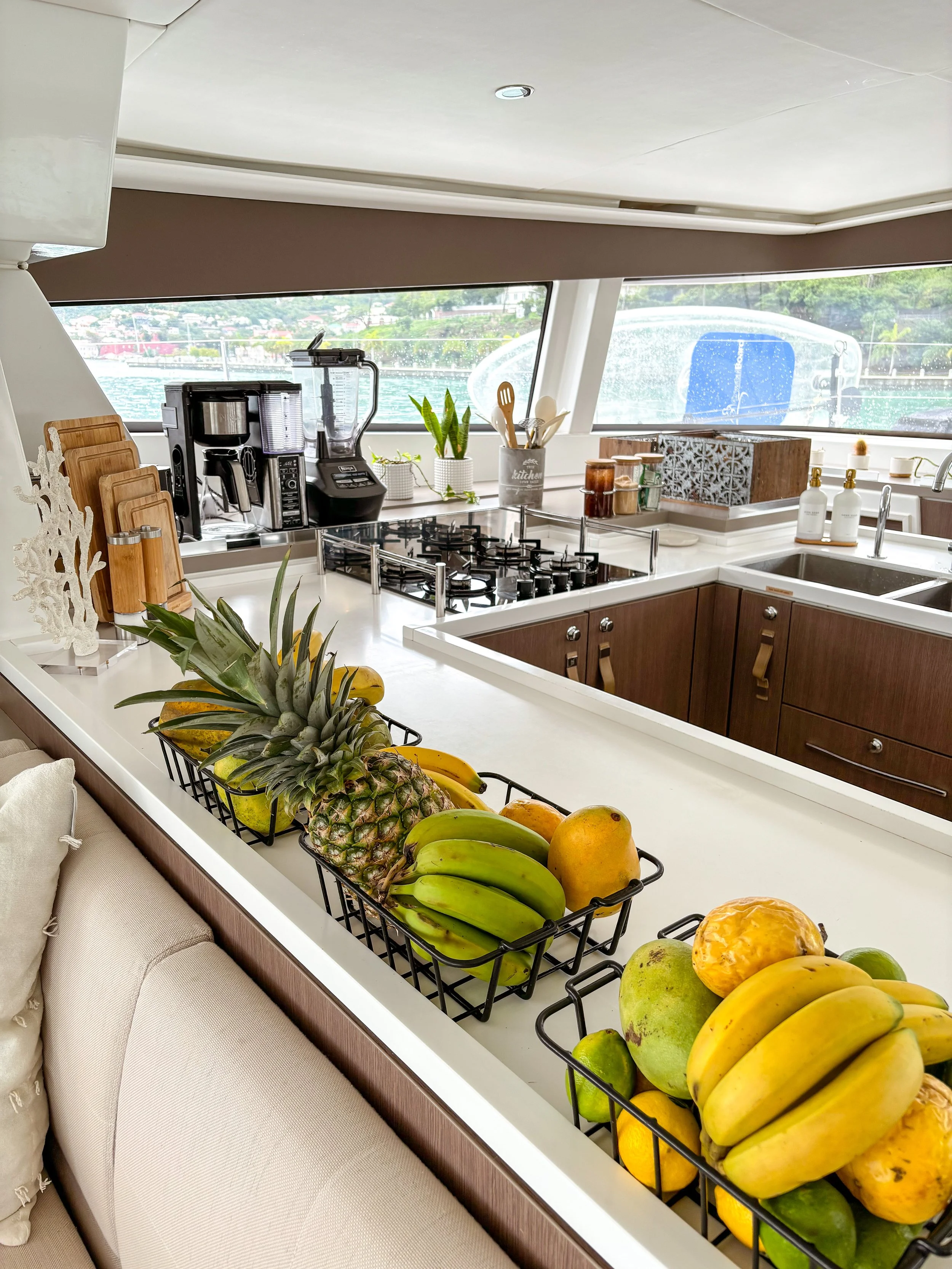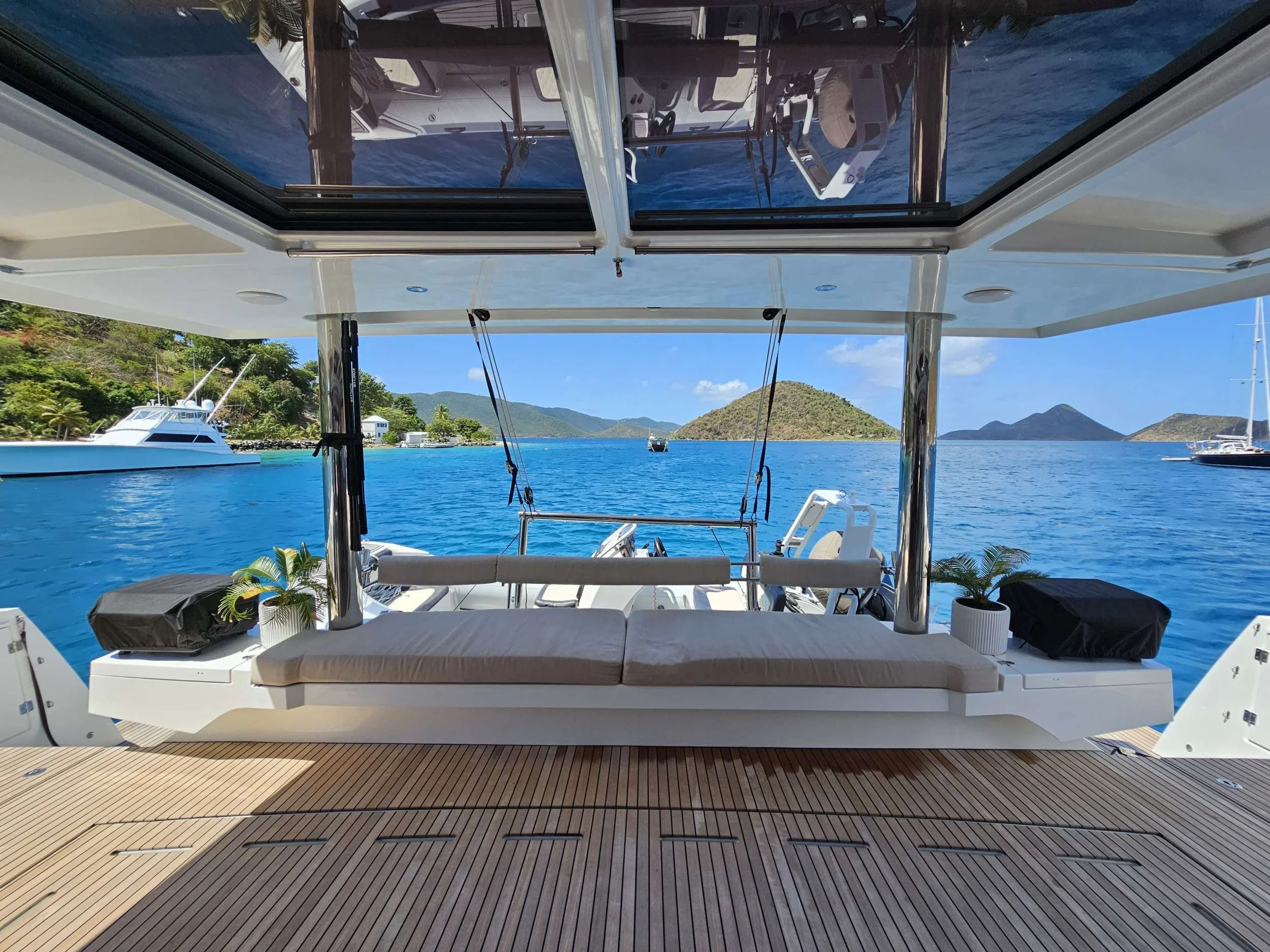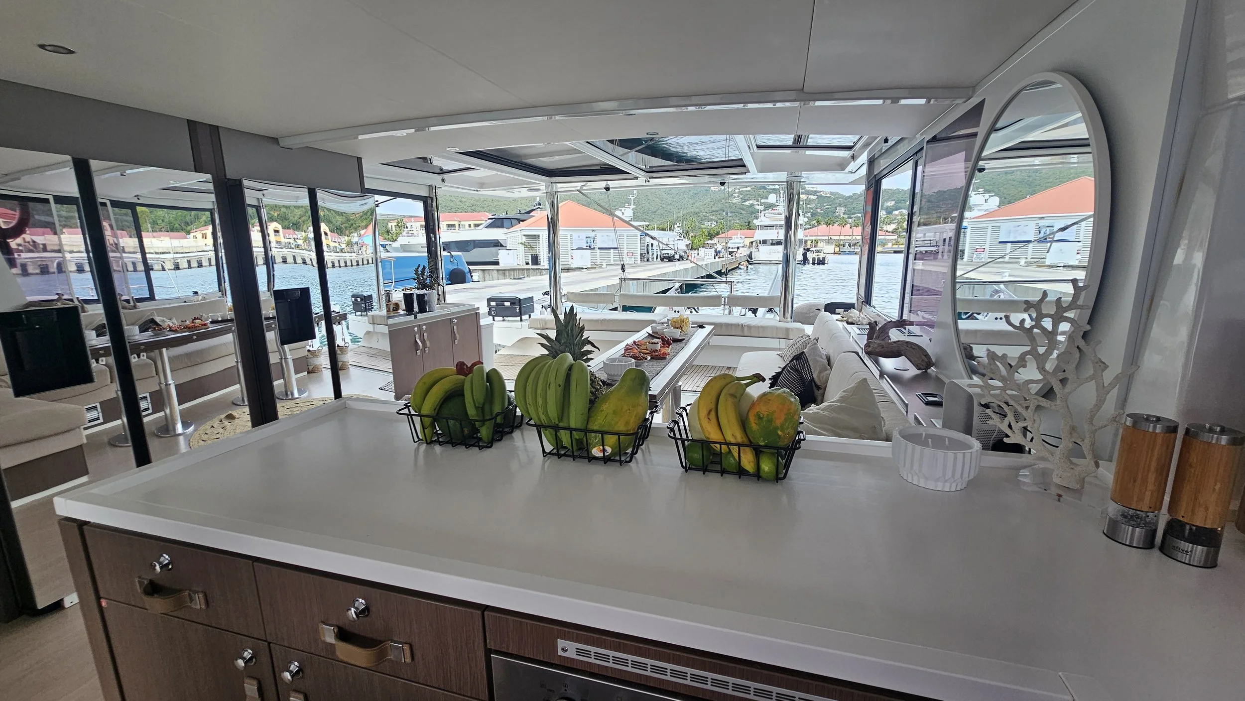 Bali catamarans are known and appreciated for their unparalleled success in blending luxury, space and performance. The model’s design further capitalizes on that reputation with the advent of the “Bali garage door” that is the centerpiece of the yacht. It allows for the aft wall of the yacht to simply disappear into the roof, opening up the back of the yacht to an unobstructed view of paradise. This also affords indoor/outdoor dining options and gives the ever-present Caribbean breeze ample opportunity to make its way through the yacht with ease. -